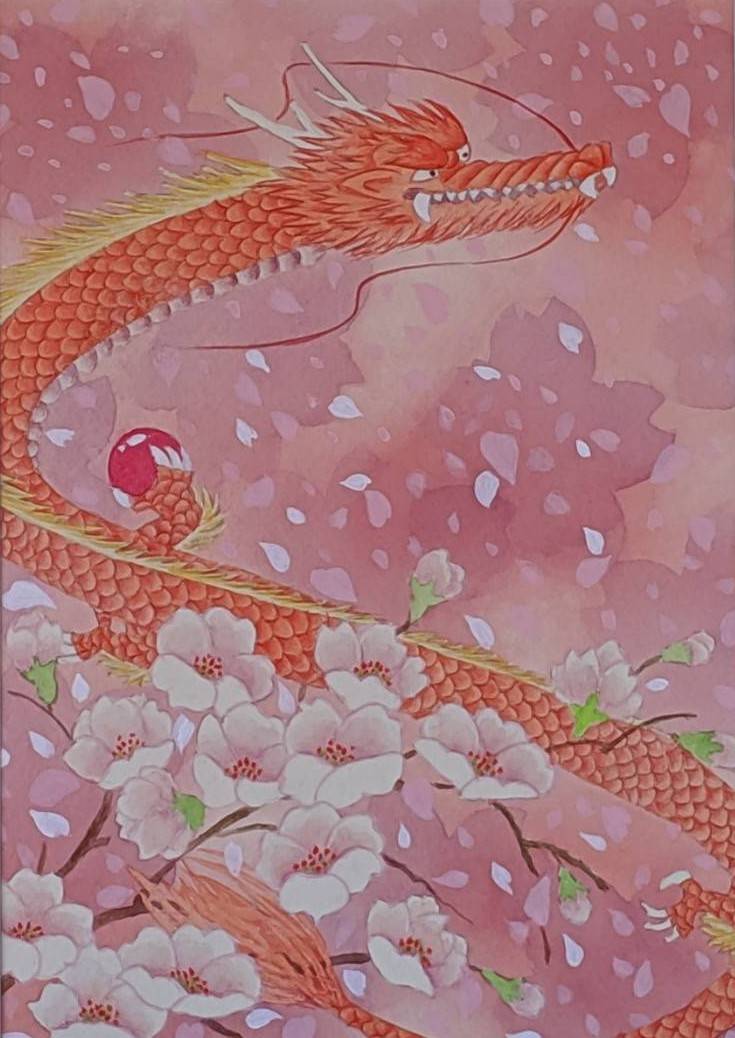 龍神様と桜のコラボ。日本人ならではの最高の組み合わせです。春を待つ私達の心にマッチした福を呼び込んでくれるような作品です。