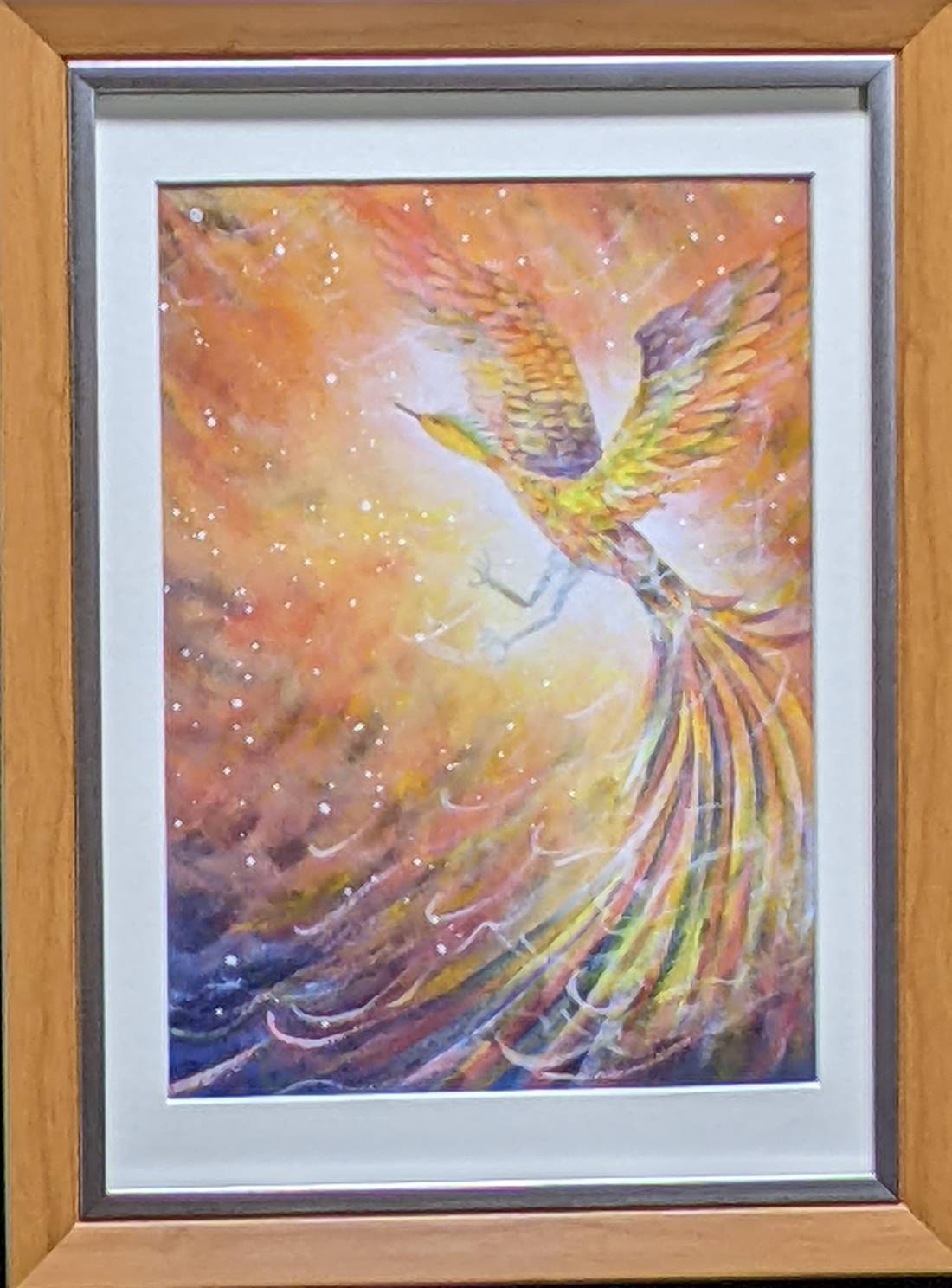 この作品は、風を切って羽ばたく鳳凰様を手描きで描いた絵です。鳳凰様は幸運や開運を象徴し、あなたの人生に幸せや成功をもたらすでしょう。この絵は、あなたの人生に導きを与え、幸運を呼び込んでくれるでしょう。