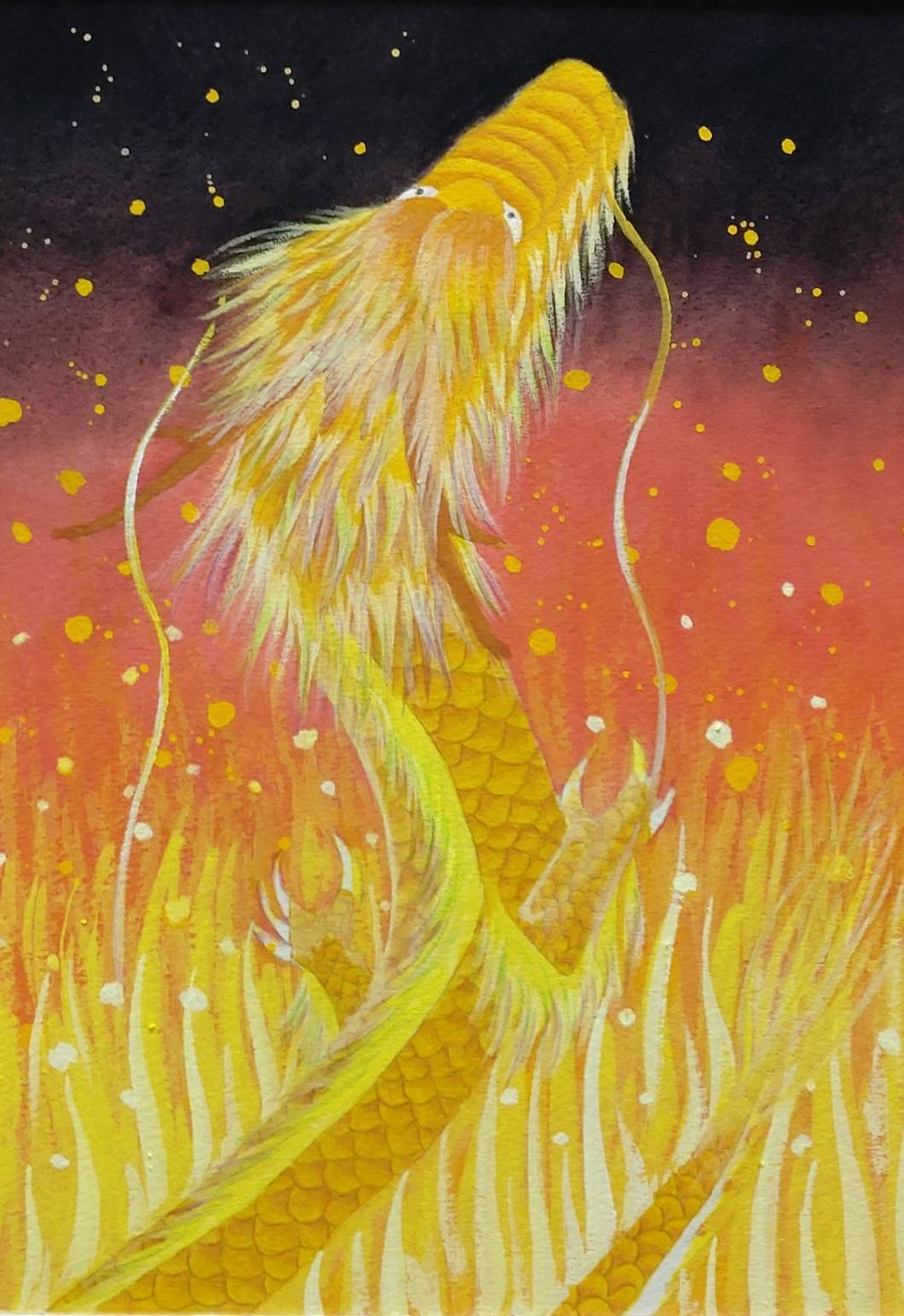 「希望」というテーマを掲げた、手描きの絵です。龍神をモチーフにしたデザインで、開運・幸せ・夢・希望・安心を象徴しています。龍神は、古来から縁起物とされ、様々な願いを叶える力があるとされています。