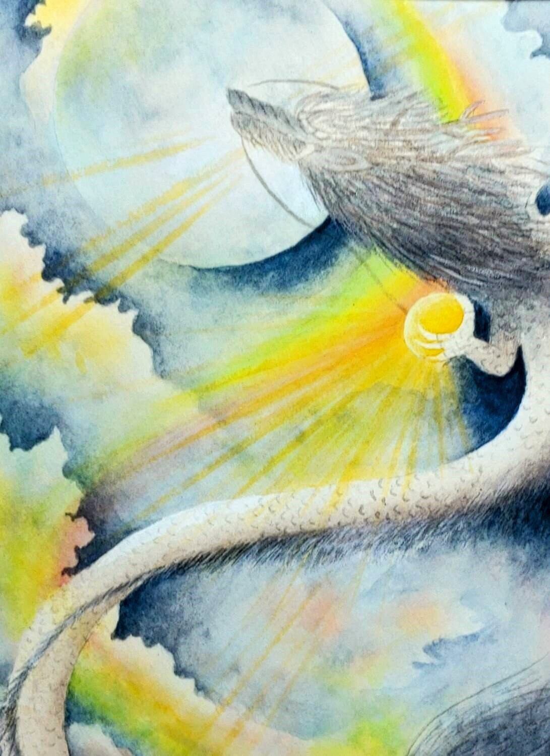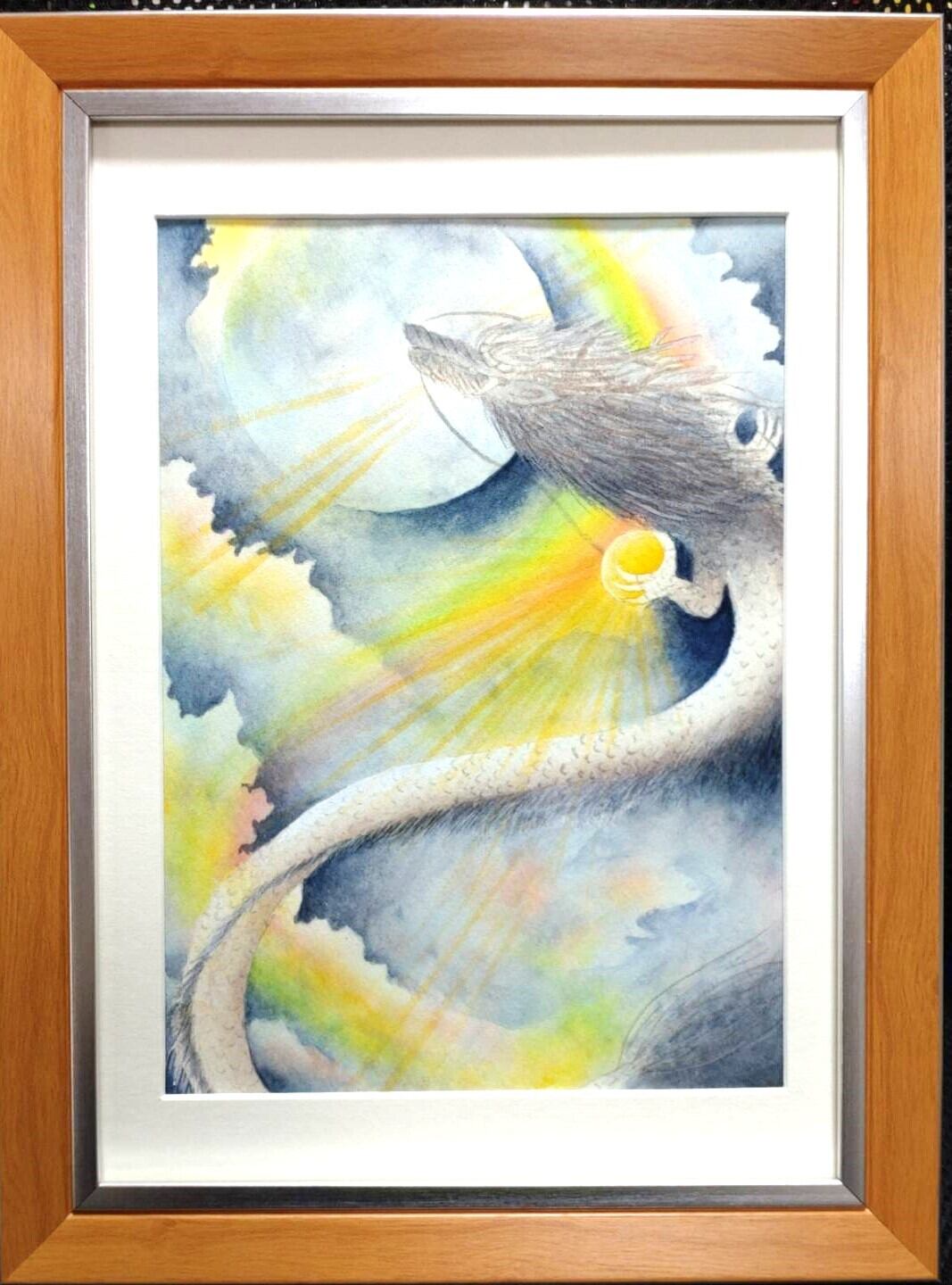 手描きの絵で表現された「燃え立つ龍」は、力強い龍神様の姿が特徴的な作品です。龍神様が描かれることで、幸運や豊かさを呼び寄せる強いメッセージが込められており、見る人にポジティブなエネルギーを届けます。虹の美しい色合いが加わり、日常生活の中で心を癒し、幸福感を高めてくれることでしょう。手描きの1点物です。鹿児島県日置市大汝牟遅神社にて祈願しております。