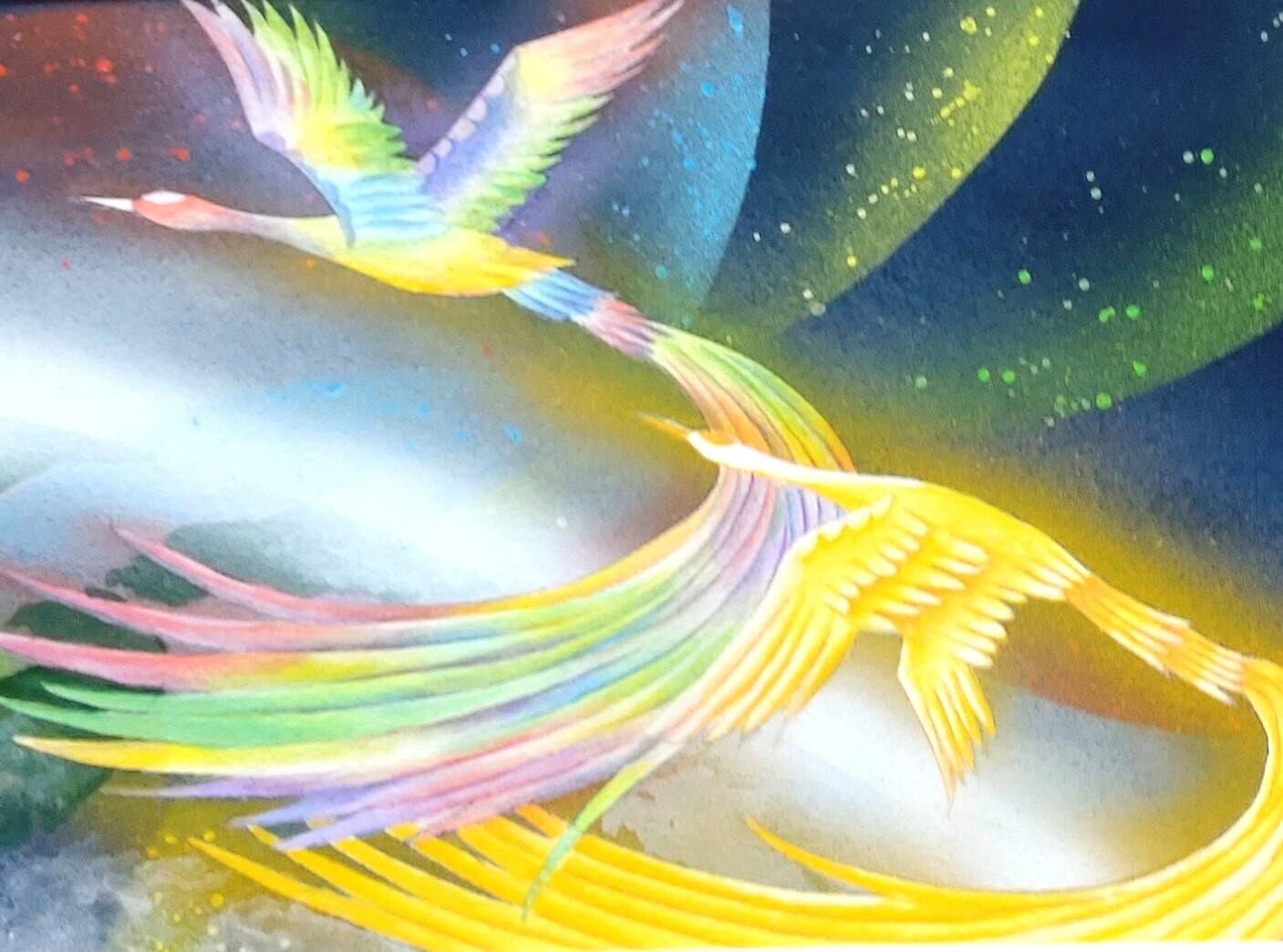 これからは、鳳凰の時代へと言われています。「雅な世界」は、華麗な鳳凰様が描かれた作品です。鳳凰様が象徴する招福や幸、安泰のエネルギーが一つに結集し、見る人の心に安らぎと希望をもたらします。手描きの温かみが感じられ、日常生活に彩りを加えることでしょう。手描きの1点物です。鹿児島県日置市大汝牟遅神社にて祈願しております。